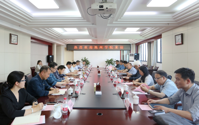 4月29日,池州學院黨委副書記、院長王先柱來校調研交流,學校在行政樓會議室召開座談會,黨委副書記周飛、副校長陳秀接待來賓一行,相關職能部門負責人參加會議。