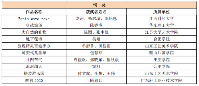 我校設計學院學生宛楓在趙靜老師指導下獲得最具商業價值獎1項,銅獎1項,吳翔在高京老師指導下獲得銅獎1項,譚淼在趙靜老師指導下獲得優秀獎1項,覃柳生在高京老師指導下獲得優秀獎1項,獲得鼓勵獎3項。合肥學院獲優秀指導院校獎和優秀組織院校獎。