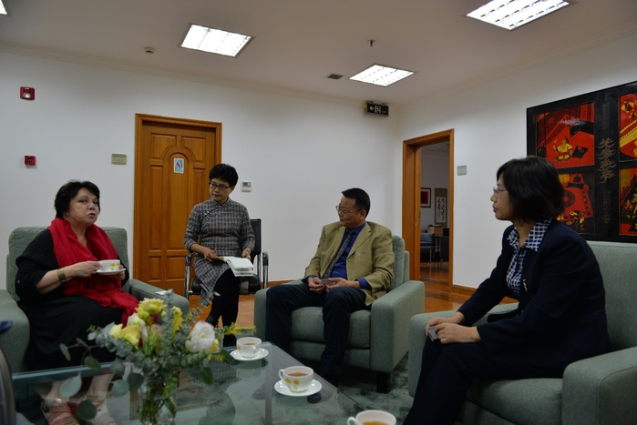 10月21日,合肥學院校長吳春梅與安徽省外辦主任雍成瀚共赴上海拜會德國駐滬總領館總領事歐珍博士(Dr. Christine D Althauser),并參加于當日舉辦的德國“統一日”招待會活動,國際交流合作處副處長張慧(主持工作)陪同與會。