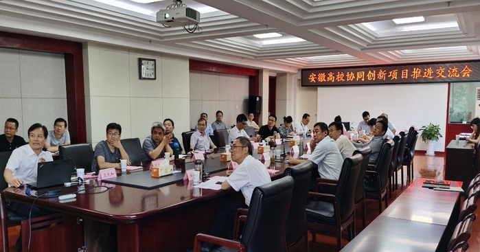 6月24日下午,安徽省高校協同創新項目推進交流會在合肥學院行政樓9樓東會議室召開。合肥學院黨委書記王其東、副校長盧平,安徽科技學院副校長黃友銳,合肥職業技術學院校長等出席會議。會議由盧平主持。
