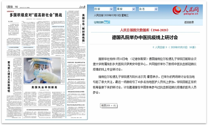 人民日報、新華社等央媒報道我校孔子學院舉辦中醫抗疫線上研討會