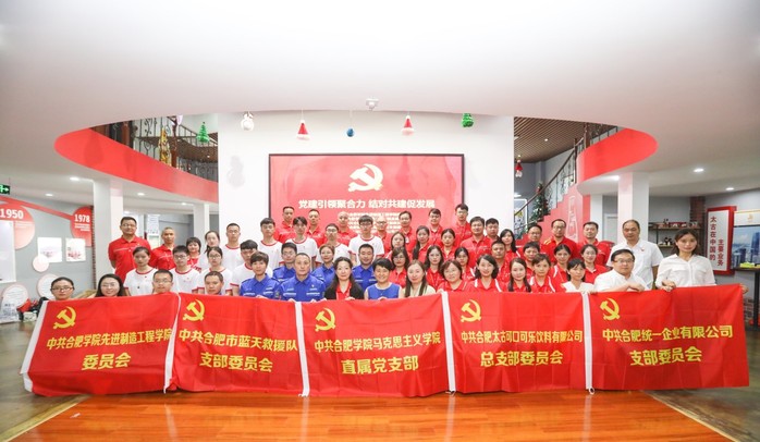 今年是中國(guó)共產(chǎn)黨成立一百周年,也是“十四五”開局之年和全面建設(shè)社會(huì)主義現(xiàn)代化國(guó)家新征程開啟之年。為深入學(xué)習(xí)黨史,歌頌黨的光輝歷程,激勵(lì)師生黨員及企業(yè)員工堅(jiān)定理想信念,凝聚磅礴力量。6月24日下午,合肥學(xué)院先進(jìn)制造工程學(xué)院黨委、馬克思主義學(xué)院直屬黨支部與太古可口可樂公司總支委、合肥市藍(lán)天救援隊(duì)支委、統(tǒng)一企業(yè)有限公司支委聯(lián)合開展了“黨建引領(lǐng)聚合力,結(jié)對(duì)共建促發(fā)展”的主題黨日活動(dòng)。合肥學(xué)院先進(jìn)制造工程學(xué)院黨委書記杜娟、馬克思主義學(xué)院院長(zhǎng)胡艷萍,太古可口可樂公司黨總支書記夏敏、人力資源總監(jiān)賈真珍,藍(lán)天救援隊(duì)隊(duì)長(zhǎng)蘇琴、支部書記劉曉東,統(tǒng)一企業(yè)有限公司工會(huì)主席闞冬芹、支部書記丁偉偉及五家單位的黨員代表共50余人參加了本次活動(dòng)。