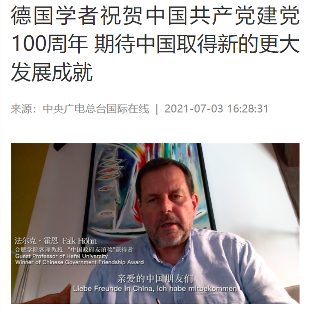 【黨史學習教育】多家主流媒體報道我校德國專家祝賀中國共產黨成立100周年