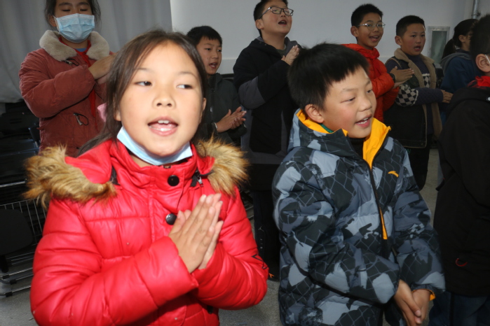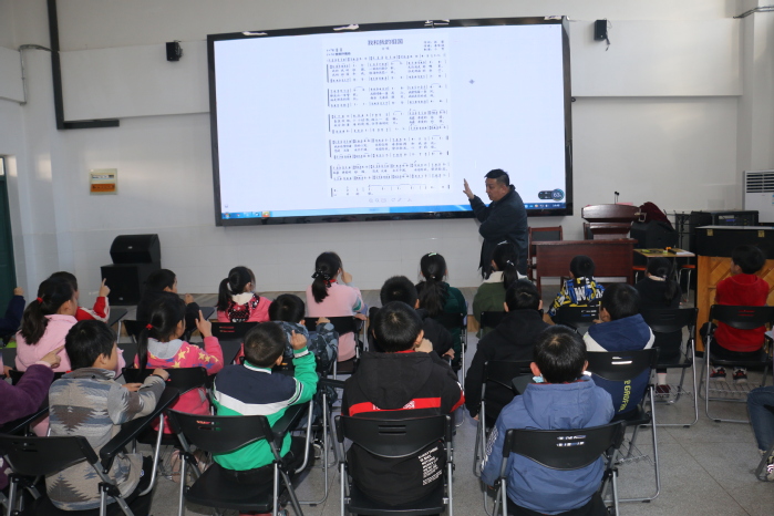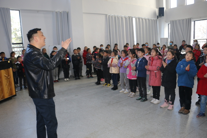 教學之余,曹紅星還從全校三到四年級六個班里遴選出四十名同學參加合唱團,每周三、周五下午,利用課外活動時間排練了《唱支山歌給黨聽》《聽我說謝謝你》兩首合唱曲目。經過曹紅星的互動教學引導,合唱團的很多學生變得表現欲強烈、自信心大增,每次課程結束,學生們都不再怕生,主動圍著曹紅星交流。“隨風潛入夜,潤物細無聲。”音樂教育就是用這種潛移默化的方式,以它強烈的藝術感染力發揮著獨特的育人功能,曹紅星老師用愛與專業為同心小學的孩子們種下一顆種子。