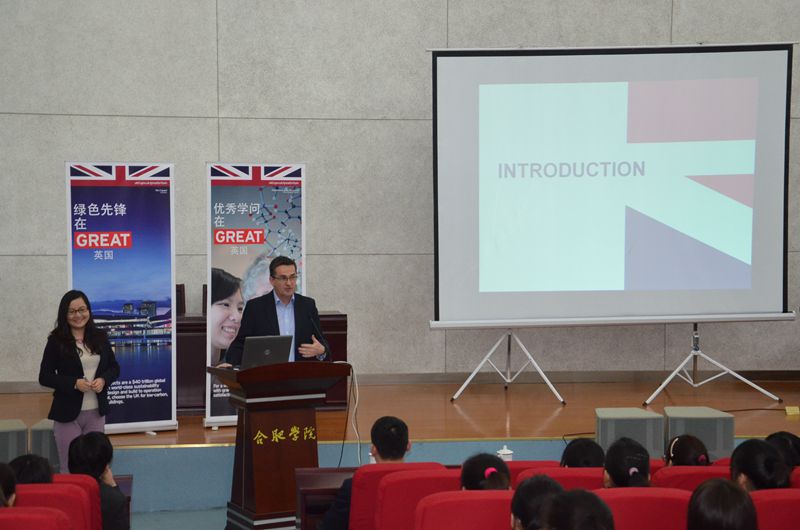 報告會伊始,院長張文兵致歡迎詞,代表學院對傅博詩先生一行表示歡迎。張文兵說,自1985年以來,合肥學院積極開展國際交流與合作,先后與德國、韓國、日本、美國等國家和地區的44所高校建立友好的合作關系,形成了鮮明的國際化辦學特色。此次傅博詩先生的來訪將為我院師生獻上豐富多彩的英國文化大餐,必將推動師生們對英國文化、歷史及中英文化交流的新認識和興趣培養,為中英文化的交流起到牽線搭橋的作用。