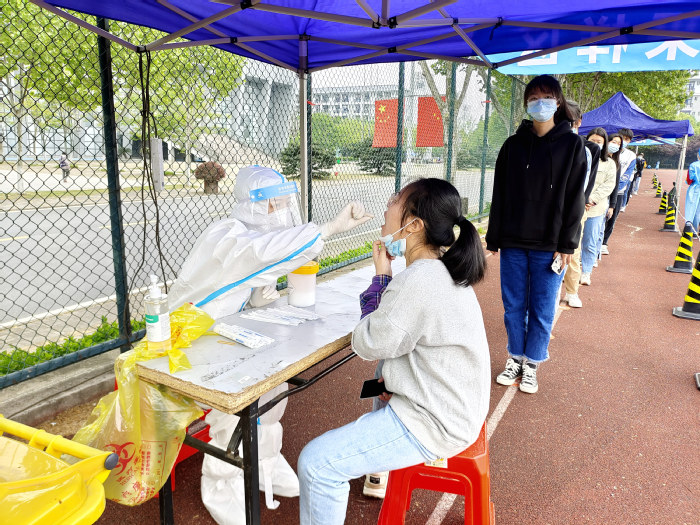 13點,演練正式啟動。參加演練的學生佩戴口罩、間隔一米、測量體溫,持健康碼、行程碼登記信息,有序進入核酸采樣檢測區進行咽拭子采樣,隨即迅速從規定出口離開。樣本按照規范被逐一收集儲存,現場產生的醫療垃圾按照要求被及時處理。采樣結束后,工作人員對采樣入口到出口的通道進行消殺,并回收現場設備。期間,演練專項工作組成員巡查指導校園各采樣點核酸檢測工作,及時處置核酸檢測工作過程中的各類問題。