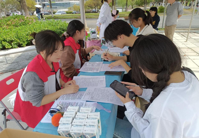 活動開始前,獻血車早早駛入校園,志愿者們忙碌地穿梭在各個角落,為前來獻血的師生提供引導和服務。活動現場,工作人員向參與獻血的同學詳細介紹了獻血流程和注意事項,大家有序進行量血壓、體檢、獻血、留觀等。期間,工作人員耐心地為獻血同學進行答疑解惑,密切關注獻血同學的身體狀況。