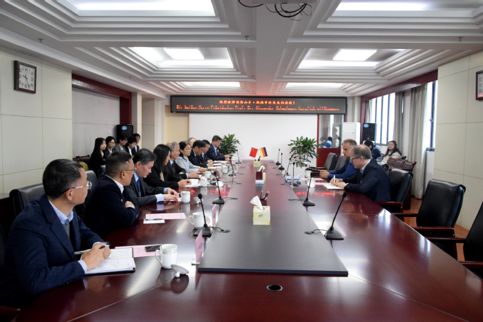 王其東對亞歷山大·施梅曼校長的來訪表示熱烈歡迎,并簡要介紹了我校的辦學情況。他表示,在過去的39年,我校與奧斯納布呂克應用科學大學開展了卓有成效的合作,雙方合作共建兩個中外合作辦學專業、舉辦了17屆中德應用型高等教育研討會、出版了《應用型高等教育研究》國際學術年刊。合肥大學正在推進高水平應用型大學建設,希望可以與奧斯納布呂克應用科學大學攜手共建,在研究生聯合培養、共建新能源汽車專業等方面擴展合作。