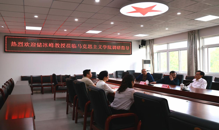 報告會結束后,吳功福陪同儲冰峰教授前往馬克思主義學院開展調研座談。座談會上,儲冰峰圍繞課程創新、課題研究、師資培養及科研合作等方面,為學院發展提出了一系列建設性建議。吳功福表示,要深入學習貫徹習近平總書記對學校思政課建設重要指示精神,加強校內外思政資源整合,構建思政大課堂,創新推動思政課建設內涵式發展,把道理講深講透講活,不斷提高思政課的針對性和吸引力。馬克思主義學院負責人表示,將以此次交流為契機,充分吸收專家意見,持續深化教學改革,提升科研創新能力,切實將黨史學習教育成果轉化為育人實效,為推動學校高質量發展、培育擔當民族復興大任的時代新人貢獻力量。