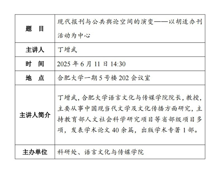 【善思講壇】現代報刊與公共輿論空間的演變——以胡適辦刊活動為中心
