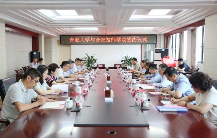 6月24日,我校與安徽合肥技師學院簽約暨人才聯合培養基地揭牌儀式在行政樓九樓東會議室舉辦,合肥市副市長何逢陽,合肥市人力資源與社會保障局黨組書記、局長徐生彬,黨組成員、副局長任清智,安徽合肥技師學院黨委書記、院長程長風,黨委委員、副院長姜玉茹,我校黨委副書記、校長任永,黨委委員、副校長王曉峰出席儀式,儀式由王曉峰主持。