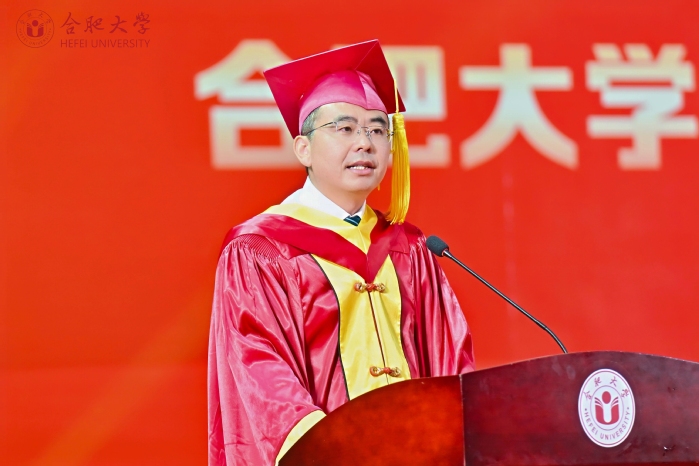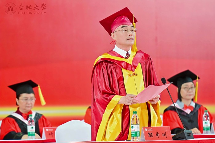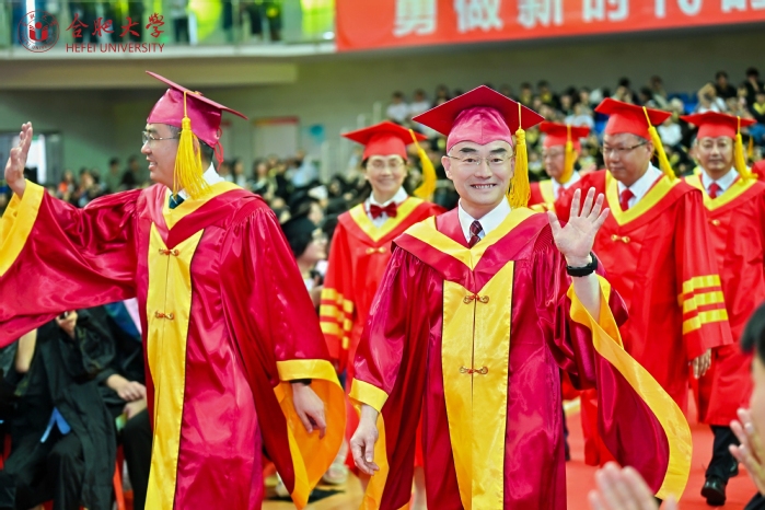 6月25日,合肥大學2025年畢業典禮暨學位授予儀式在體育館舉行。校領導鄔平川、任永、周飛、陳秀、白義香、吳功福、王曉峰出席,校學位評定委員會全體成員、職能部門負責人、2025屆畢業生代表、學生家長代表,各二級學院學位評定委員會委員代表、教師代表參加。