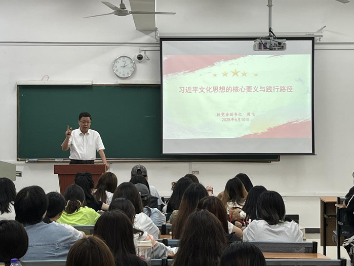 6月10日下午,校黨委副書記周飛以“習(xí)近平文化思想的核心要義與踐行路徑”為題,為24級產(chǎn)品設(shè)計專業(yè)學(xué)生授課。他從文化的概念與價值切入,闡釋習(xí)近平文化思想的生成邏輯、科學(xué)內(nèi)涵,強調(diào)其作為新時代黨領(lǐng)導(dǎo)文化建設(shè)實踐經(jīng)驗的理論總結(jié)的重要意義。通過列舉習(xí)近平總書記考察歷史文化場館等實例,結(jié)合學(xué)校文化建設(shè)實際,他鼓勵學(xué)生堅定文化自信,參與文化傳承創(chuàng)新,從中華優(yōu)秀傳統(tǒng)文化中汲取養(yǎng)分,講好中國故事。