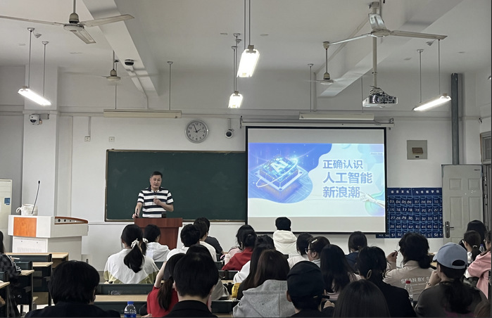 5月8日下午,副校長王曉峰為23級漢語言文學(xué)專業(yè)學(xué)生講授“正確認識人工智能新浪潮”。他從認清發(fā)展態(tài)勢、應(yīng)用走深走實、筑牢發(fā)展優(yōu)勢三方面,幫助學(xué)生了解人工智能趨勢,增強科技自立自強信心。他鼓勵學(xué)生培養(yǎng)數(shù)字技能,在堅守人文精神的同時提升競爭力,以前沿案例引發(fā)學(xué)生思想共鳴。