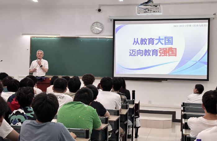 6月3日下午,校黨委書記鄔平川走進35-108教室,以“從教育大國邁向教育強國”為題,為23級網(wǎng)絡(luò)工程、軟件工程和計算機科學(xué)技術(shù)等專業(yè)學(xué)生講授《形勢與政策》課。他先以“之前的教育與現(xiàn)在的教育有什么變化與發(fā)展”問題引發(fā)學(xué)生熱議,進而從教育強國建設(shè)的重大意義、現(xiàn)實基礎(chǔ)和戰(zhàn)略部署三個方面,系統(tǒng)闡釋了“為何建、建什么、如何建”的核心命題。授課中,他結(jié)合學(xué)校應(yīng)用型大學(xué)定位,以感人故事與詳實數(shù)據(jù)娓娓道來,讓學(xué)生深刻認識到自身在教育強國建設(shè)中的責任。