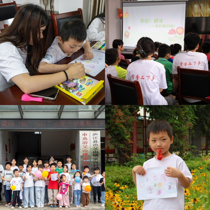 實踐團隊開設“你眼中的家鄉”繪畫課,引導孩子們描繪家鄉的秀麗山水與獨特的風土人情,在藝術創作中深化對鄉土文化的認知與情感認同。團隊成員巧妙融合傳統元素與現代韻律,帶領孩子們在舞蹈中體驗藝術的魅力。
