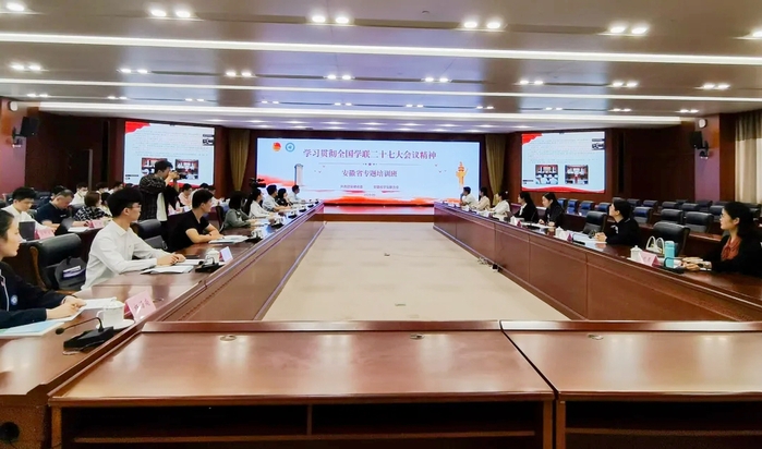 為深入學(xué)習(xí)貫徹習(xí)近平總書記賀信和黨中央致詞精神,全面貫徹落實(shí)全國(guó)學(xué)聯(lián)二十七大提出的工作部署和任務(wù),9月25日,團(tuán)省委、省學(xué)聯(lián)舉辦學(xué)習(xí)貫徹全國(guó)學(xué)聯(lián)二十七大會(huì)議精神安徽省專題培訓(xùn)班,我校團(tuán)委組織各學(xué)院師生團(tuán)干參與培訓(xùn)并座談交流。