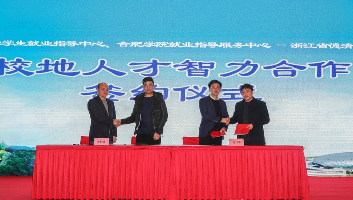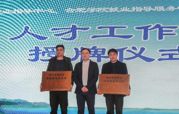 隨后,我校和合肥工業大學共同與德清縣人社局簽訂人才智力合作協議,德清縣委組織部副部長、人才辦常務副主任費征代表德清縣向我校和合肥工業大學授予“浙江省德清縣駐戰略合作高校人才工作站”牌匾。