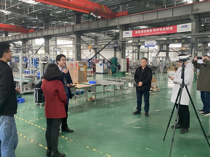 在C3棟科研樓,哈工大機(jī)器人集團(tuán)合肥有限公司總經(jīng)理李旭東詳細(xì)介紹了6個(gè)研究所的相關(guān)情況,并重點(diǎn)展示了機(jī)器人的各種功能。最后直播轉(zhuǎn)場到合肥哈工龍延智能裝備有限公司的生產(chǎn)廠區(qū),哈工龍延是我校優(yōu)秀校友李新利創(chuàng)辦的企業(yè),它提供“智慧工廠”的解決方案、機(jī)器人物料搬運(yùn)系統(tǒng)集成應(yīng)用等,企業(yè)年銷售額連續(xù)3年均在1.5個(gè)億左右,是實(shí)習(xí)基地中的龍頭企業(yè)。直播中,李旭東對同學(xué)們提出的問題一一作出解答。