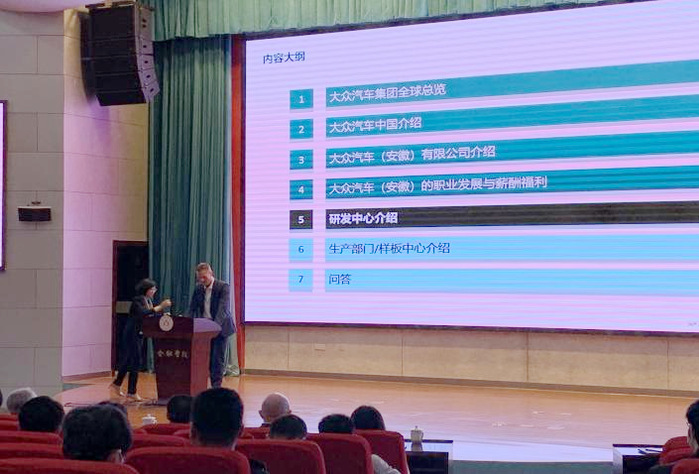 為深入開展大眾汽車(安徽)有限公司與合肥學(xué)院的合作,協(xié)同推進(jìn)校企合作培養(yǎng)人才,4月26日上午,大眾汽車(安徽)在我校圖書館報(bào)告廳A廳召開校園宣講會,此次宣講會由大眾汽車有限公司首席人力資源官卲劍主持,大眾公司首席技術(shù)官呂爾曼、首席制造官施耐德、人力資源負(fù)責(zé)人曹垚、效率管理總監(jiān)朱江萍來校宣講,我校教務(wù)處、國際交流合作處、先進(jìn)制造工程學(xué)院、人工智能與大數(shù)據(jù)學(xué)院等單位負(fù)責(zé)人,先進(jìn)制造工程學(xué)院和人工智能與大數(shù)據(jù)學(xué)院部分大三大四學(xué)生參加會議。