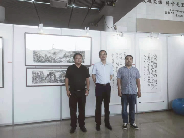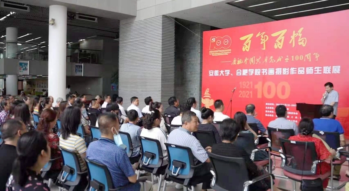 7月2日下午,為慶祝中國共產(chǎn)黨成立100周年,以“百年百幅”為題,由合肥學院、安徽大學共同舉辦的師生書畫攝影作品聯(lián)展在安徽大學磬苑校區(qū)文典閣開展。安徽大學黨委書記蔡敬民出席活動并致辭,我校黨委委員、宣傳統(tǒng)戰(zhàn)部部長賈峰,工會主席崔國慶參加開幕式并參觀展覽。
