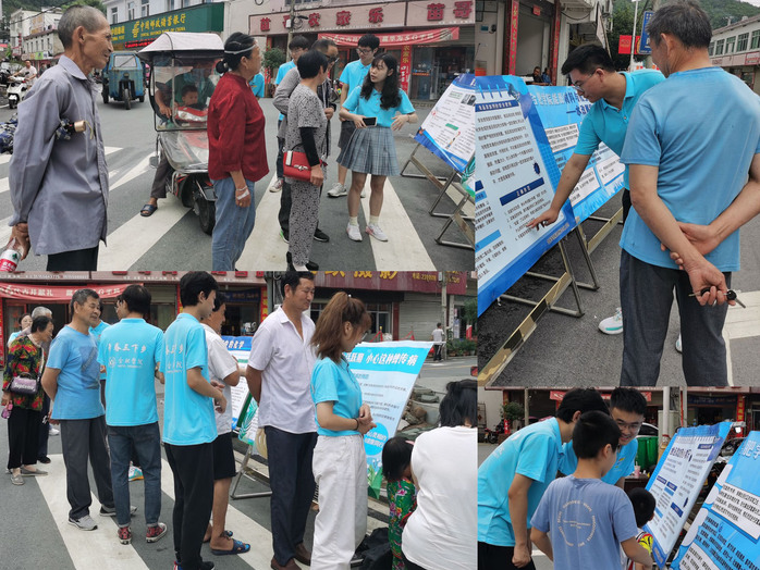 調研團在河圖鎮街道宣傳點擺放宣傳板、懸掛宣傳橫幅、張貼宣傳海報,開展改水改廁、食品添加劑、家居中的化學、蜱蟲傳播疾病、“護苗2021”專項行動、憲法衛士等主題的科普宣講。隊員們充分運用所學知識,向村民講解改水改廁的原因及作用、家居中的化學知識和蜱傳病的危害以及解決方法等,并向他們普及法律知識,號召大家抵制有害出版物,營造良好社會文化環境。