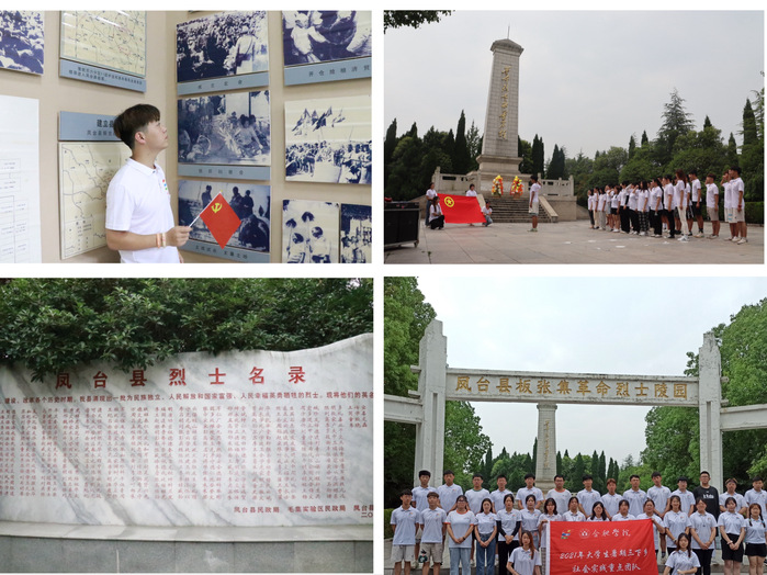 為深切緬懷革命烈士,弘揚(yáng)革命精神,7月19日上午,隊(duì)員們來(lái)到了鳳臺(tái)縣板張集革命烈士陵園,懷著崇高的敬意向革命烈士敬獻(xiàn)花籃、默哀致敬,并在烈士墓前莊嚴(yán)宣誓。在紀(jì)念館內(nèi),隊(duì)員們觀看歷史圖片、烈士遺物,聆聽(tīng)革命烈士的英勇斗爭(zhēng)事跡。“作為新時(shí)代青年,我們一定會(huì)繼承先輩艱苦奮斗的光榮傳統(tǒng),賡續(xù)愛(ài)黨愛(ài)國(guó)的精神,努力奮斗,刻苦磨煉,服務(wù)社會(huì)。”參觀結(jié)束后,孔偉亮同學(xué)難掩激動(dòng)之情。