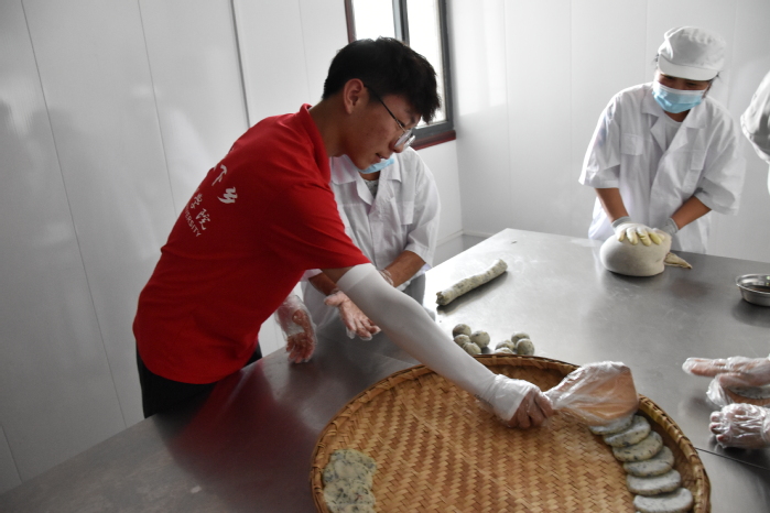 在前往柿樹崗鄉之前,調研團隊通過網上查閱資料,了解到當地擁有多項市級和縣級非遺項目,政府和居民對非遺保護與傳承高度重視,政府通過政策進行扶持,將非遺打造成當地文化名片;當地居民在繼承非遺文化同時,積極尋找合適的繼承者傳授技藝,確保非遺文化薪火相傳。在探尋非遺過程中,調研團隊有幸參與到非遺食品蒿子粑粑的制作過程中,品嘗美味的同時,也親身感受蘊藏在其中的文化基因。調研團隊還近距離觀看了當地非遺項目“門歌”和“碟子舞”,了解其創作理念及傳承情況,深入感受當地鄉土人情。