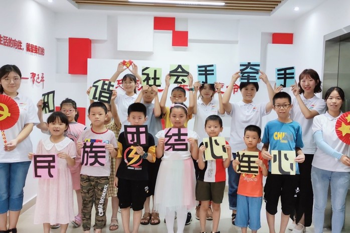 7月19日至23日,團隊成員們本著回報社會、服務社會的宗旨,以促進兒童全面發展為目標,將合肥濱湖和園社區作為據點,結合社區實際情況,開展義務支教活動。該團隊根據教育學院專業特色及學生興趣開設手工、聲樂、美術等特色課程,以團體心理輔導為載體,聚焦社區兒童的身心健康,關注兒童的健康成長。同時帶領青少年進一步了解學習黨史,激發愛黨愛國之情,進一步促進民族團結、弘揚傳統文化、傳承紅色精神。