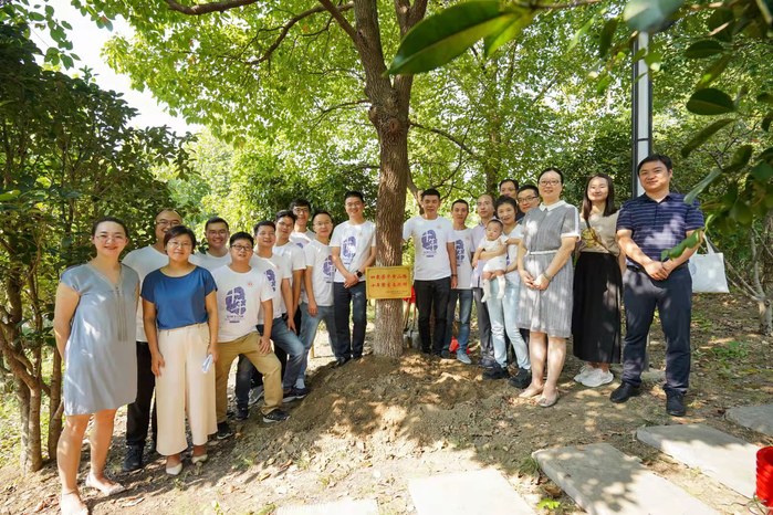 上午9點(diǎn)30分,校友一行來(lái)到行政樓邊的“校友林”參加植樹(shù)揭牌儀式。劉金平對(duì)校友的返校和捐贈(zèng)表示熱烈歡迎,她指出,“校友紀(jì)念樹(shù)”是連接校友與母校的紐帶,預(yù)示著共同成長(zhǎng)、共同輝煌。希望校友們無(wú)論身在何方,始終心系母校,有空常回母校看看。校友陳鐵龍?jiān)诖戆l(fā)言中表達(dá)了對(duì)母校辛勤培養(yǎng)和關(guān)心支持的感激之情,他將牢記“厚德、博學(xué)、善思、致用”的校訓(xùn),在人生奮進(jìn)路上與母校同向同行。儀式上,張偉頎與校友代表丁中原共同為“校友紀(jì)念樹(shù)”揭牌。