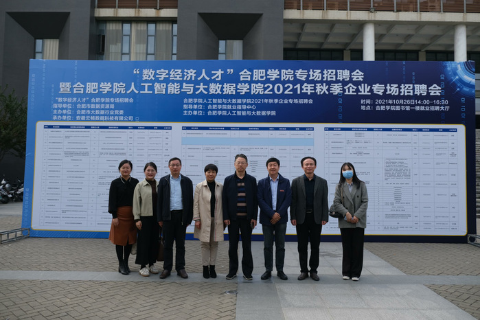 為推動畢業(yè)生更加充分更高質(zhì)量就業(yè),10月26日,人工智能與大數(shù)據(jù)學(xué)院于圖書館一樓就業(yè)招聘大廳走廊舉辦 “數(shù)字經(jīng)濟(jì)人才”合肥學(xué)院專場招聘會暨人工智能與大數(shù)據(jù)學(xué)院2021年秋季企業(yè)專場招聘會,本次招聘會得到了合肥市數(shù)字資源局的大力支持。合肥市數(shù)據(jù)資源局三級調(diào)研員申林,我校黨委委員、學(xué)生工作部部長朱濤,人工智能與大數(shù)據(jù)學(xué)院黨委書記牛欣、院長檀明、黨委副書記儲昭輝到現(xiàn)場檢查指導(dǎo)工作。
