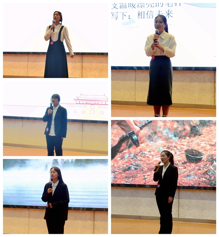 比賽伊始,在個人朗誦環節中,各位選手聲情并茂、充滿激情地朗誦經典文學作品。其中,選手們對《誰是我們最可愛的人》《月光下的中國》等選段的精彩演繹,抒發了強烈的愛國情感。經過第一輪的精彩比拼,共有七位選手晉級第二輪——故事人生環節。七位選手從“1921年”、“紅軍長征”、“抗美援朝”、“改革開放”、“脫貧攻堅”、“疫情”六個關鍵詞中隨機抽取,以抽取的關鍵詞為主題講述故事,選手們緊扣關鍵詞,引經據典,為觀眾講述了一個個令人難忘的故事,贏得了場下觀眾和評委們的陣陣掌聲。
