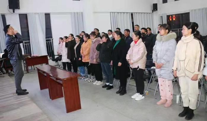 為更好地傳播傳承紅色文化,講好紅色故事,應金寨縣天堂寨鎮領導要求,由我校支教老師曹紅星同志組建并指導的同心合唱團,于12月6日晚在同心小學多功能大廳正式開唱。