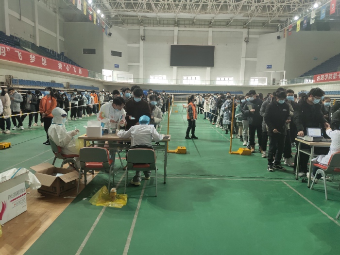 12月23日上午,學(xué)校在校體育館主館啟動(dòng)核酸檢測(cè)服務(wù)。醫(yī)護(hù)人員、學(xué)生志愿者分工協(xié)作,組織參加核酸檢測(cè)的學(xué)生有序間隔排隊(duì)、順利采集樣本,全程快速高效,為1668位考研學(xué)子提供了高質(zhì)量的服務(wù)。