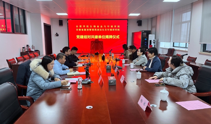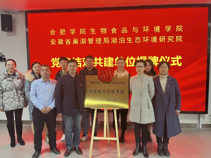 為切實(shí)推動黨建工作創(chuàng)新,不斷提高黨建引領(lǐng)事業(yè)發(fā)展能力,增強(qiáng)師生黨員服務(wù)社會能力,1月7日,生物食品與環(huán)境學(xué)院、巢湖管理局湖泊生態(tài)環(huán)境研究院(巢湖研究院)舉行黨建結(jié)對共建單位揭牌儀式。巢湖研究院黨支部書記、副院長唐曉先,巢湖研究院總工程師萬能勝,環(huán)境科學(xué)研究室副主任高芮,科研管理部副部長韓琦,生物食品與環(huán)境學(xué)院全體黨委委員、環(huán)境工程系教師及學(xué)生黨支部書記參加儀式。儀式由唐曉先主持。