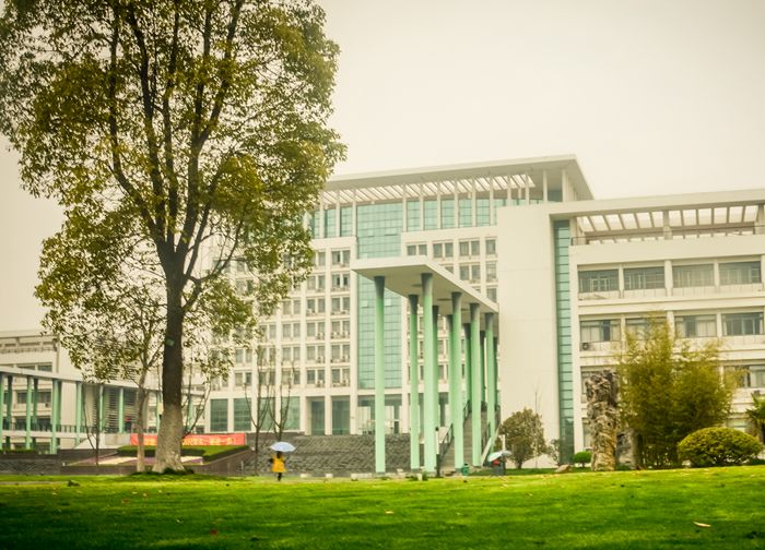 “沾衣欲濕杏花雨,吹面不寒楊柳風(fēng)”。徐徐行走圖書館外,古木廊上,“落花人獨(dú)立,微雨燕雙飛”怎曉得一場微風(fēng)十里,如姿睡意幾何,一習(xí)雨露通明。倦身不敵花繁,信步以解疲憊,困意朦朧千里,燕語呢喃幾許;展凝眸,望湖水,看波光粼粼,風(fēng)動(dòng)柳枝搖。藝術(shù)樓旁花木叢萃的古亭,閑來無事時(shí),花前柳下,把酒當(dāng)歌,執(zhí)筆潑墨,吟詩作畫,盡顯浪漫。教學(xué)樓前雨水漂過的廣玉蘭依舊笑得驕傲,風(fēng)輕奏過的迎春粉瓣柔情勝水,雨洗之后的竹葉也顯得愈發(fā)蒼翠。