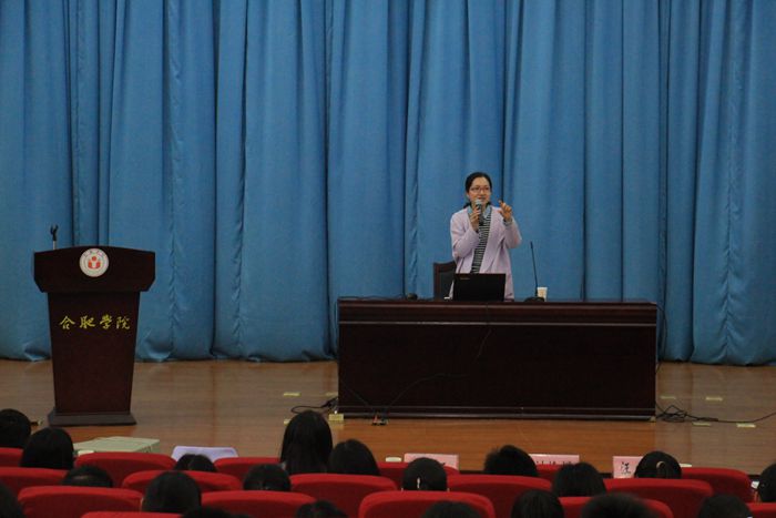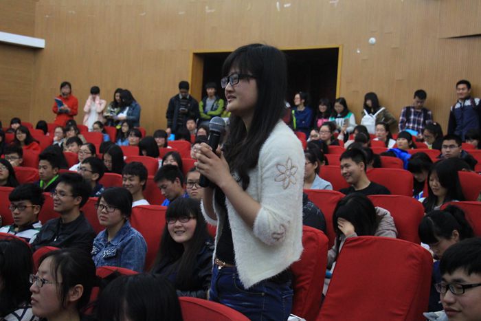 開班典禮結束后,進行了第一次授課。來自新安晚報資深記者鐘虹結合自身的經驗,與與會的同學分享了自己“累并幸福著”的記者生涯中的點滴故事。“如果讓你用五個關鍵詞來表述記者的工作,你會想到哪些詞?”一開場,鐘虹便拋出這個問題與同學們進行互動。“苦、承擔、正義、勇敢……”互動中同學們積極發言,發散的思維調動了現場的氣氛。而后,鐘虹從“自由、跨界、突破、壓力與榮光”五個方面分享了自己的感受。從“深夜暴雨街頭采訪”到“合肥新一輪老舊小區改造”,從“隨時待命,倚馬可待”到“換新角度思考問題”一個個動人的故事引發了現場同學對記者這一職業的期待。然而,記者并非如表面看到的那樣光鮮亮麗,分享中,鐘虹也講述了自己與同事遇到的各種壓力與危險。一件件鮮活的事例暗藏著記者這一職業不為人知的辛苦與壓力。雖然有著種種危險和困難,但記者的一篇報道能解救被囚少女,能救助身患絕癥的病人,能給受難者帶來陽光和雨露,她深深地感慨道:“心中始終要保持這份榮光,因為這是對自己的尊重,也是對這份職業的敬意。”此次授課在一段饒有趣味的視頻中結束,視頻中展示了新安晚報記者們的日常生活,有趣的視頻使現場氣氛達到高潮。