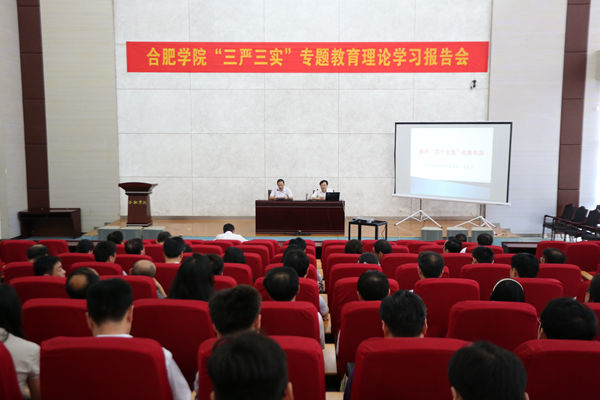 為配合“三嚴三實”專題教育第一專題集中學習研討,學習領會習近平總書記提出的“四個全面”戰略布局思想內涵,進一步打牢全校各級領導干部的思想根基,6月25日下午,在學校圖書館學術報告廳舉行了“四個全面”戰略布局輔導講座,特邀安徽省科學社會主義學會副會長、中共安徽省委黨校教授胡東升授課。學校全體處以上干部參會,會議由校黨委委員、紀委書記洪家友主持。