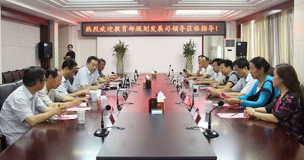 6月29日,教育部發展規劃司后勤改革處朱寶銅處長在省教育廳副巡視員周元、省高校后勤管理中心主任陳鵬、副主任高昆同志的陪同下來校調研,校黨委副書記、校長張文兵同志會見了調研組一行。