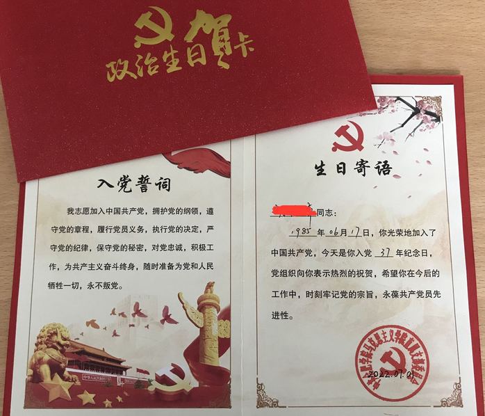 參觀后,馬克思主義學院直屬黨支部為每位黨員頒發了定制的政治生日賀卡,開展集體過政治生日活動,全體黨員在莊嚴的黨旗下,重溫入黨誓詞,充滿儀式感的政治生日賀卡和寄語,錚錚入黨誓詞,讓每位黨員牢記初心使命,增強了黨員的歸屬感、榮譽感和責任感。