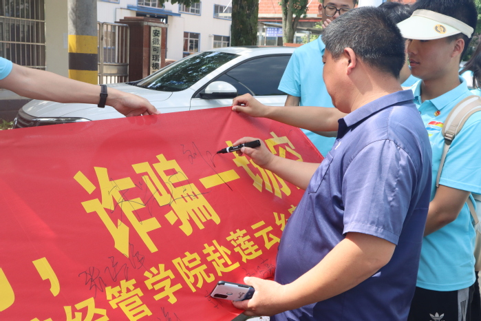 提高農(nóng)民群眾科學(xué)素質(zhì)、大力普及科學(xué)知識刻不容緩,實踐期間團隊深入大街小巷開展主題宣傳,圍繞反電信詐騙、疫情防控、全民健身、垃圾分類、黨史教育等內(nèi)容進行知識宣講和問卷調(diào)研,并熱情邀請居民們參與簽名活動。