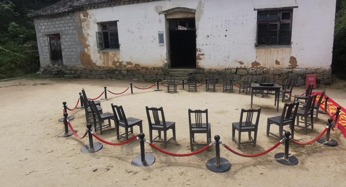 圖為調(diào)研成員參觀紅二十五軍軍政機構(gòu)舊址