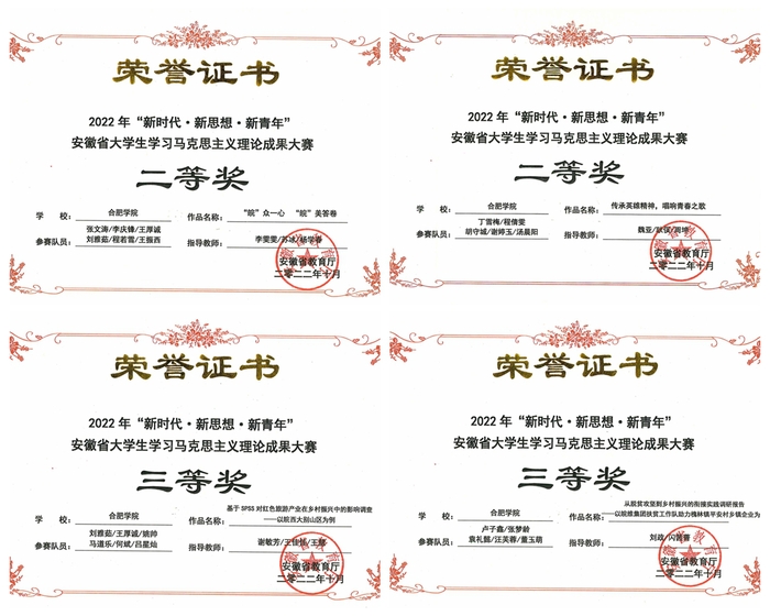 日前,2022年“新時代?新思想?新青年”安徽省大學生學習馬克思主義理論成果大賽結果公布,我校共有4項作品榮獲獎項,在該項賽事上實現了新的突破。