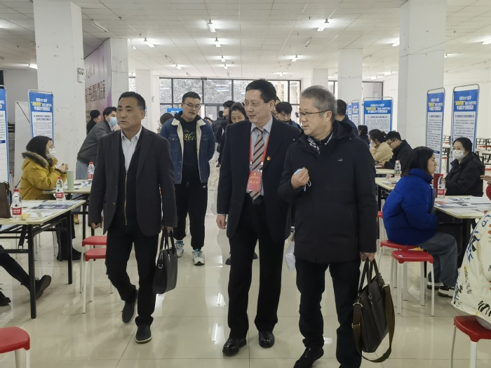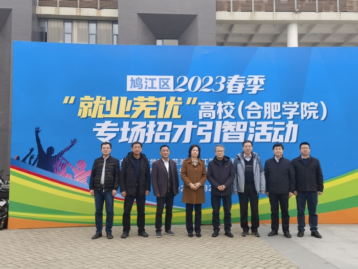 為加強校地合作,推動畢業生高質量就業,2月28日,合肥市新站經開區和蕪湖市鳩江區合肥學院專場招聘會在學校圖書館招聘大廳舉辦。蕪湖市鳩江區人大常委會副主任許洋、區人力資源和社會保障局局長肖宗明,安慶市宿松縣勞動就業管理局局長朱志剛,院長吳春梅、黨委副書記劉建中到招聘會現場調研指導工作,黨委委員、學生處處長朱濤陪同。