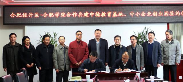 在雙方友好協商的基礎上,雙方就中德教育示范基地和中德中小企業創業園項目達成一致意見,張文兵和楊偉共同簽署了《合作共建中德教育示范基地和中德中小企業創業園框架協議》。協議旨在落實李克強總理視察合肥有關指示精神,服務經開區“調轉促”發展戰略,按照合肥市政府對德合作專題會議紀要關于經開區要利用合肥學院等創新資源,“加快建立‘中德中小企業創業園’,打造‘大眾創業、萬眾創新’合作示范平臺以及中德青年交流合作基地”的要求,深化經開區、合肥學院與德國在科教、經貿、產業領域的交流合作,通過多種形式,共同合作推進中德教育合作示范基地建設,搭建中德企業合作創新平臺。