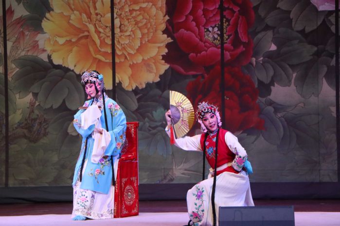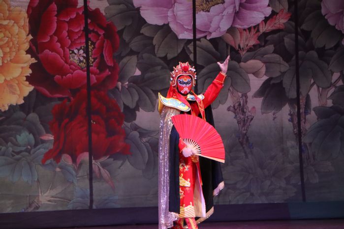 首場京劇《賣水》源出山西蒲州梆子《火焰駒》“賣水”一折,演員通過靈動的眼神、甜脆的嗓音、恰到好處的舞姿完美地展現(xiàn)出天真活潑的小丫鬟形象;徽劇《借扇》、京劇《穆柯寨》中,演員們威風(fēng)凜凜,以節(jié)奏強烈明快、動作行云流水的打戲營造出身臨其境的真實感,現(xiàn)場氣氛熱烈;《變臉》節(jié)目中,演員伴隨著鏗鏘有力的音樂不斷更換人物面具,并下場與觀眾熱情互動,現(xiàn)場掌聲不斷。