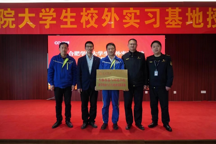 陳俊、王曉依次上臺致辭,對肥西縣城管局大力支持校企合作共建基地表示感謝?,F場,肥西縣城管局、中節能公司與我校生物食品與環境學院共同為實習基地揭牌。