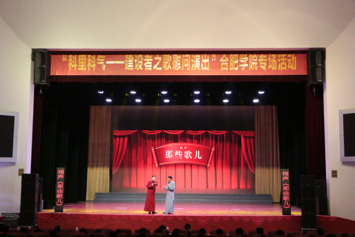 3月26日,“科里科氣——建設者之歌慰問演出”合肥學院專場活動在一期致用禮堂舉辦。本次演出由合肥市委宣傳部主辦、合肥演藝集團承辦,是文藝進高校的首場演出。合肥市委宣傳部文藝處處長何曉峰、我校團委書記王玉同1000余名合院師生共同欣賞了一場精彩絕倫的視聽盛宴。