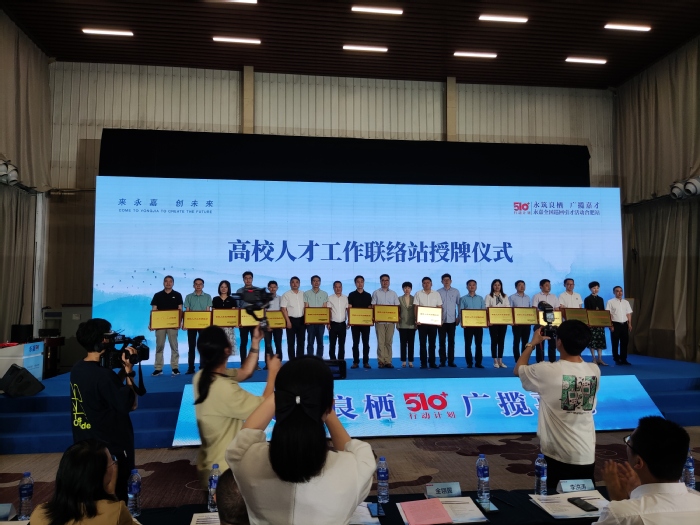 現場舉行了高校人才工作聯絡站授牌儀式,永嘉縣向中國科學技術大學、合肥工業大學、合肥學院等15所高校授牌,推動兩地建立友好合作關系,促進人才資源、科技與制造等方面的深度融合。