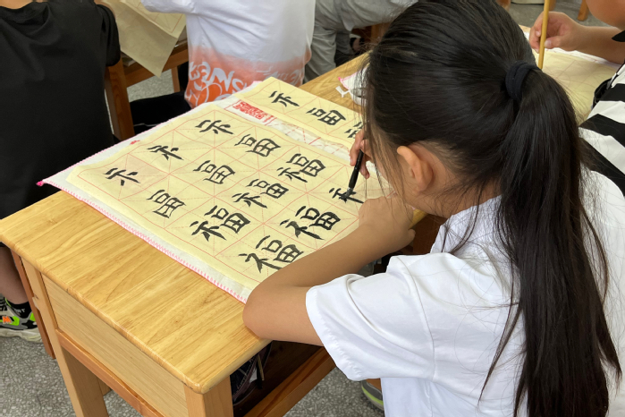 支教活動中,課程設計國學組向當地學生介紹古典音樂、古建筑、非物質文化遺產等知識,帶領學生做八段錦、太極早操,讓他們親身感受傳統文化的魅力。書寫組為學生們講授毛筆的握筆姿勢、規范字的書寫等,充分調動他們學習書法的熱情。志愿者們通過實地走訪,講解普通話學習方法,大力推廣普通話,有效提升居民“講好普通話”的意識。